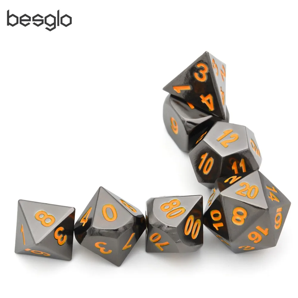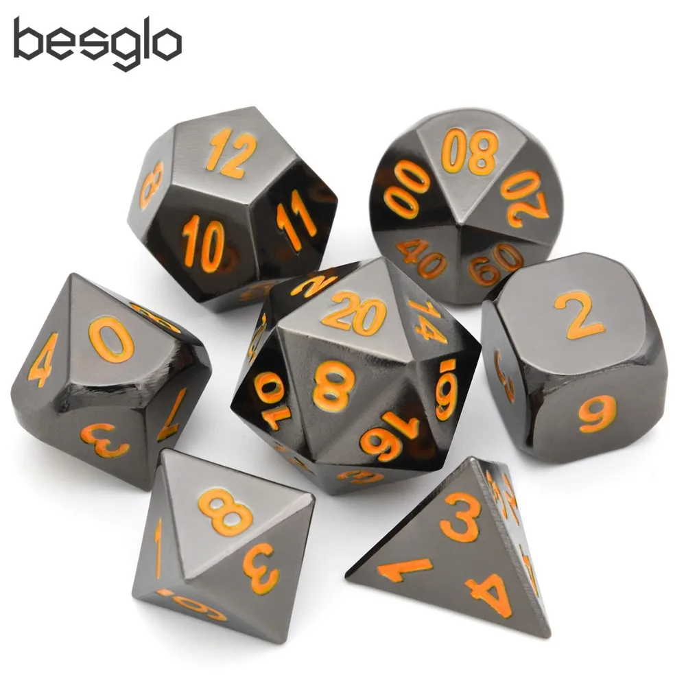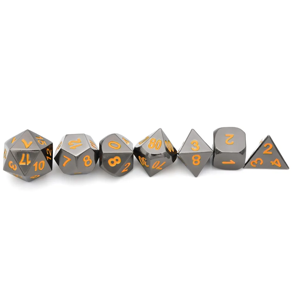 . [Скидка 0%] Купить Черный хромированный металлический набор ролевых игр с оранжевыми цифрами для подземелий и драконов, игра в кости и обучение математике Цена Дешево.